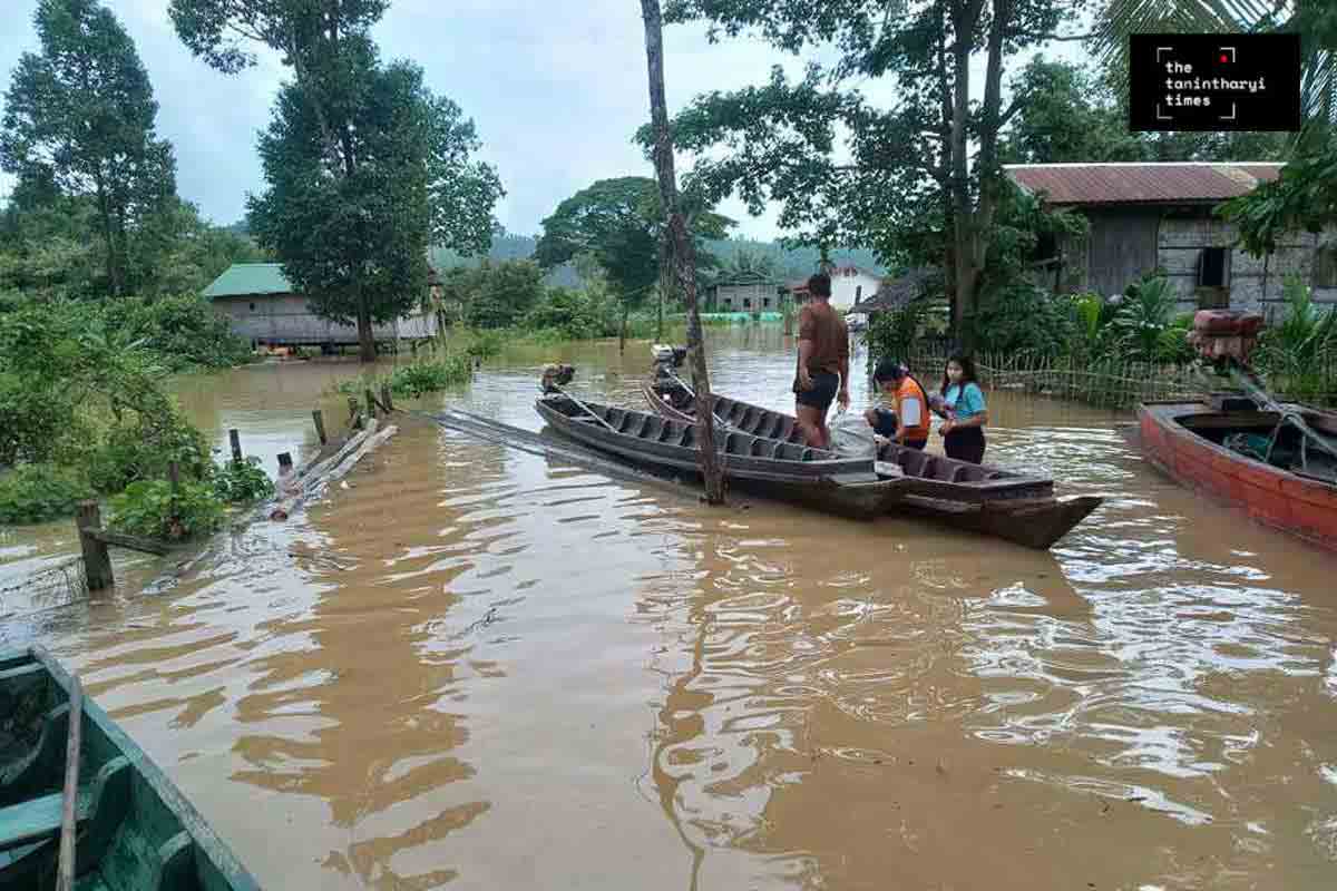 တနင်္သာရီမြို့နယ်မှာ သုံးရက်ဆက်တိုက်ရေကြီးရေလျှံနေလို့ နေအိမ်တချို့ ပြောင်းရွှေ့