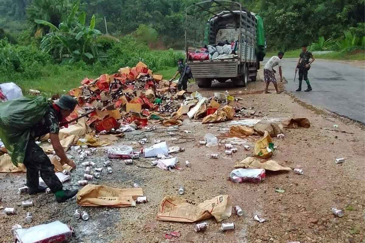 ကားပေါ်ပါလာတဲ့ ယိုးဒယားနိုင်ငံထုတ် လီယို(LEO) နဲ့ စင်းဂါး(SINGHA) တွေအားလုံးကိုဖျက်ဆီးခဲ့တာဖြစ်ပြီး ဘောက်ချာအရ တန်ဖိုး ကျပ်သိန်းတစ်ရာနီးပါးရှိတယ်လို့ဆိုပါတယ်။