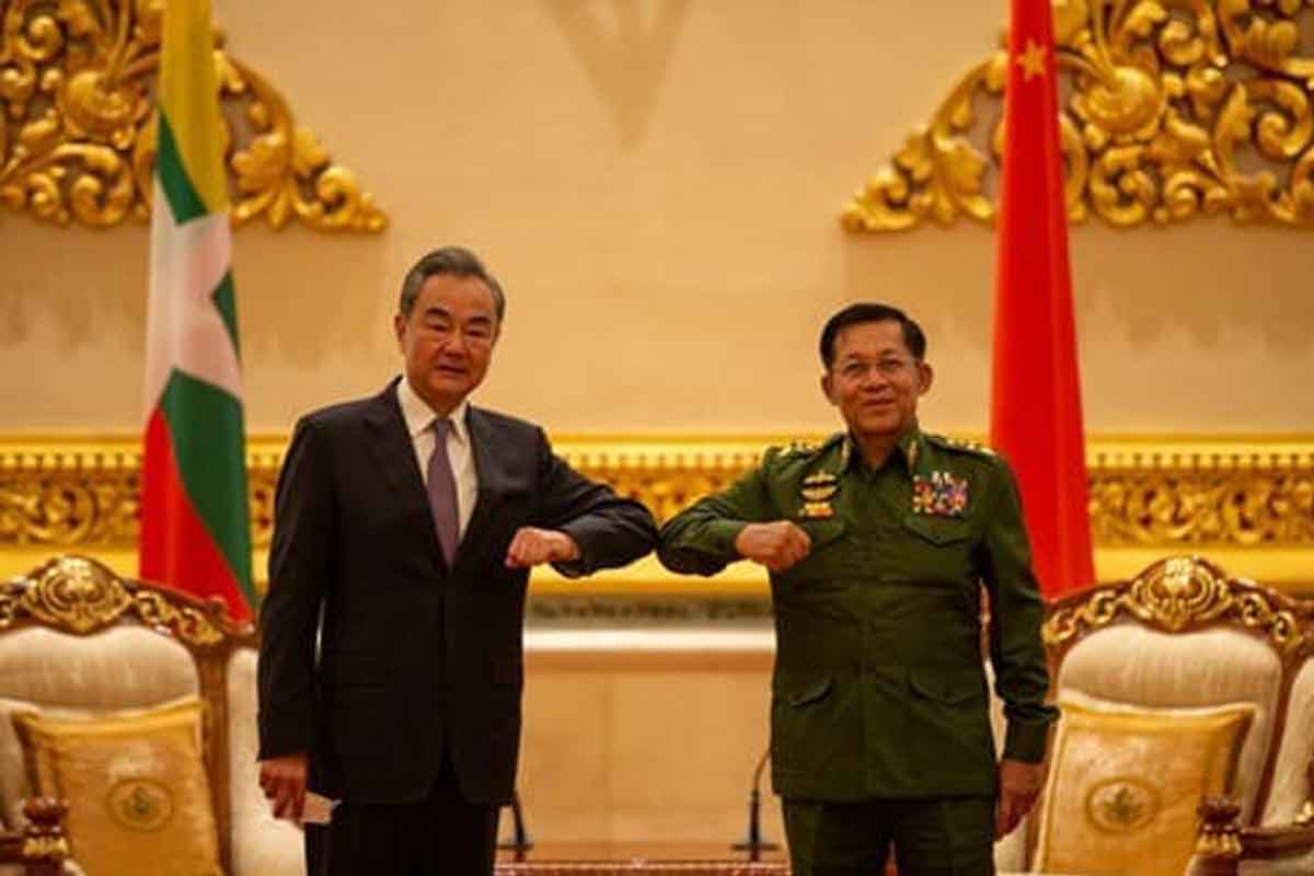 Photo - ဆင်ဟွာ / စစ်ခေါင်းဆောင်မင်းအောင်လှိုင် နဲ့ တရုတ်နိုင်ငံခြားရေးဝန်ကြီး ဝမ်ယီတို့ ၂၀၂၁ ခုနှစ် က တွေ့ဆုံခဲ့စဉ်