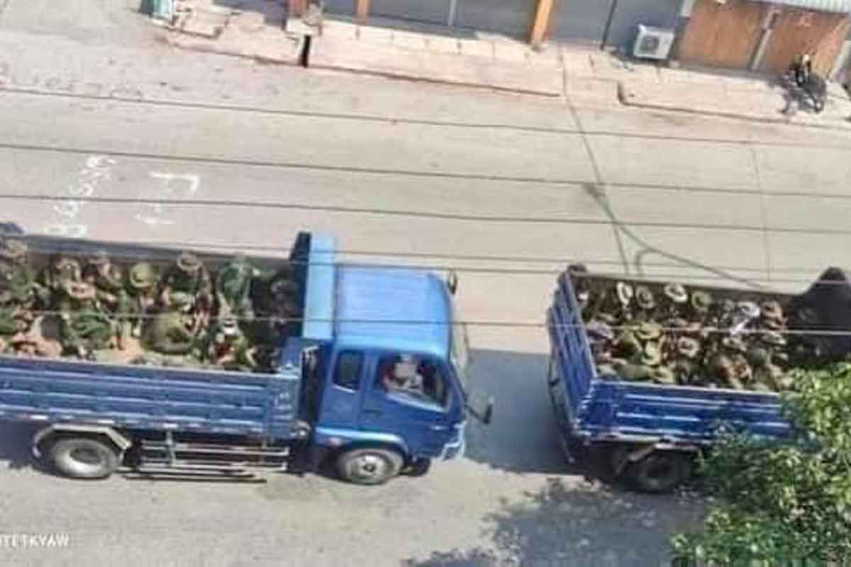 Photo - CJ (မြေသယ်ကားနဲ့ တိတ်တဆိတ်လိုက်လာတဲ့ စစ်ကောင်စီတပ်သားတွေ၊ ပုံဟောင်းဖြစ်ပါတယ်။)