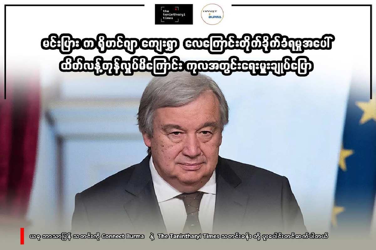 မြန်မာနိုင်ငံ မှာဖြစ်ပွားနေတဲ့ ပဋိပက္ခတွေ၊ ယိုယွင်းပျက်စီးနေတဲ့အခြေအနေတွေကို စိုးရိမ်ပူပန်နေသလို၊ အကြမ်းဖက်မှုပုံစံအားလုံးကို ပြစ်တင်ရှုတ်ချတယ်လို့ ကုလသမဂ္ဂ အတွင်းရေးမှူးချုပ်ကဆို ပါတယ်။