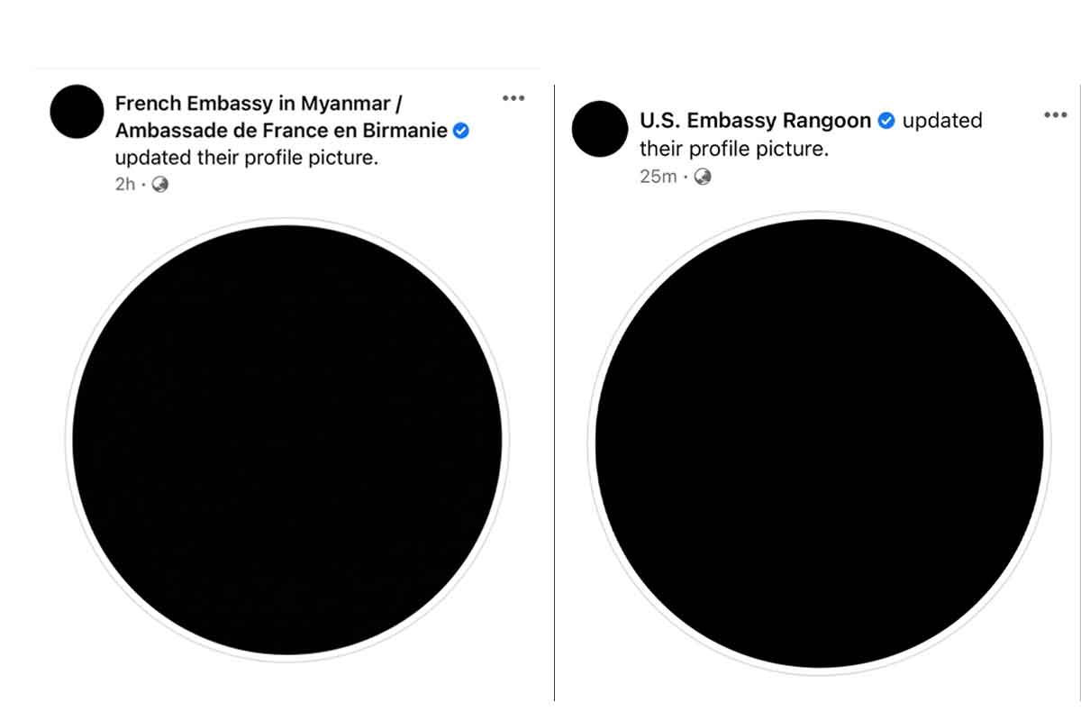 မြန်မာနိုင်ငံဆိုင်ရာ အမေရိကန်သံရုံး၊ ပြင်သစ်သံရုံးနဲ့ ဆွီဒင်သံရုံးတို့ဟာ သူတို့ရဲ့ဖေ့ဘုတ် ပရိုဖိုင်းပုံတွေကို ဒီကနေ့ မှာ ဝမ်းနည်းခြင်းသဘောဆောင်တဲ့ အနက်ရောင်ပြောင်းလဲခဲ့ပါတယ်။