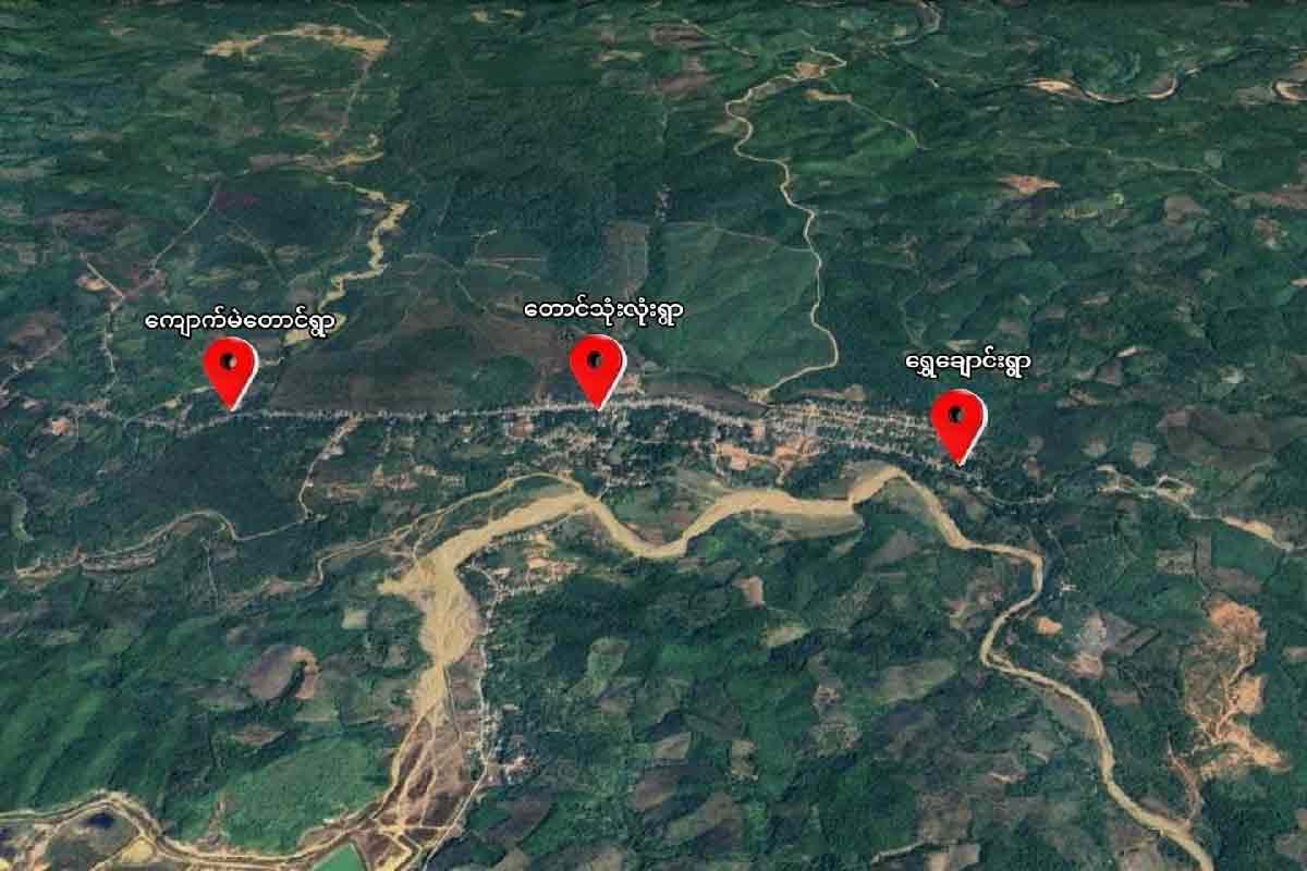 ဒီနေ့နေ့လယ် ၁၂ နာရီခွဲဝန်းကျင်မှာတော့ တောင်သုံးလုံးရွာနဲ့ ရွှေချောင်းရွာတဝိုက်ကို တိုက်လေယာဥ်နဲ့ ဗုံးသီးနှစ်လုံးကြဲချသွားတယ်လို့ တော်လှန်ရေးရဲဘော်တွေနဲ့ ဒေသခံတွေကဆိုပါတယ်။