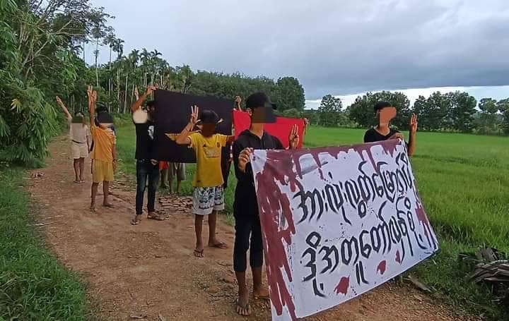 “အားလုံးလွတ်မြောက်ဖို့ ဒို့အတူတော်လှန်စို့” ဘန်နာစွဲကိုင်ကာ သရက်ချောင်းမှာ ဆန္ဒပြ