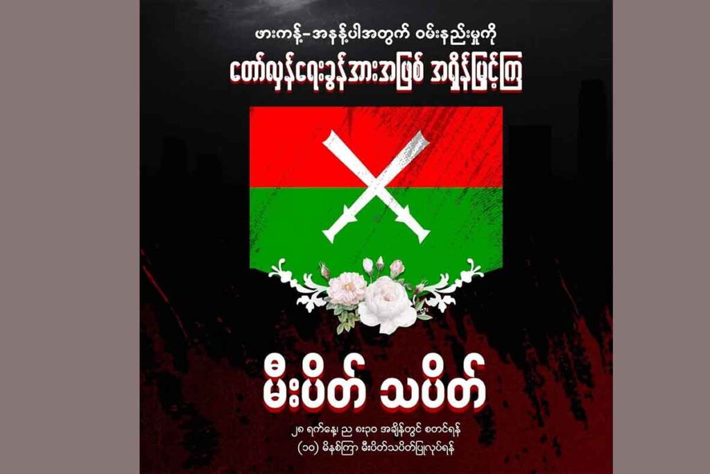 ဖားကန့်မြို့နယ်၊ အနန့်ပါဒေသကို စစ်ကောင်စီကဗုံးကြဲတိုက်လိုက်မှုကြောင့် သေဆုံးသွားတဲ့သူတွေအတွက် ဝမ်းနည်းခြင်းအားဖြင့် မီးပိတ်သပိတ်လှုပ်ရှားမှုကို အခုည ၈နာရီခွဲအချိန်မှာပြုလုပ်မှာဖြစ်ကြောင်း တော်လှန်ရေးအင်အားစုတွေက တိုက်တွန်းနှိုးဆော်ထားပါတယ်။
